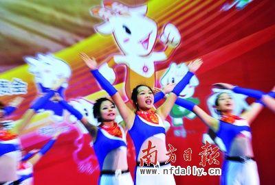南方日?qǐng)?bào)11月1日?qǐng)?bào)道 昨天,亞運(yùn)志愿助威團(tuán)選拔賽總決賽暨誓師大會(huì)在暨南大學(xué)邵逸夫體育館舉行。