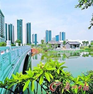 媒體村內(nèi)風(fēng)景如畫,小橋流水令人愉悅。