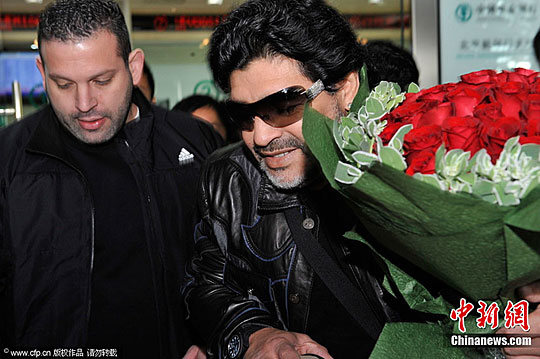 中新網(wǎng)11月3日電 今天上午8時(shí)58分,阿根廷“球王”馬拉多納所搭乘的航班抵達(dá)首都國(guó)際機(jī)場(chǎng),開啟了為期八天的“馬拉多納溫暖中國(guó)行”活動(dòng)帷幕。