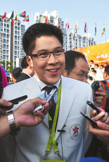 升旗儀式結(jié)束后,霍啟剛便和香港代表團(tuán)的運(yùn)動(dòng)員們簇?fù)碓谝黄鸷嫌傲裟,作為代表團(tuán)副團(tuán)長(zhǎng)的他,自然沒(méi)有忘記自己的身份!斑@一次你會(huì)去看跳水嗎?”當(dāng)華西都市報(bào)記者將這個(gè)問(wèn)題拋給霍啟剛時(shí),他笑了一笑:“我就知道你要問(wèn)我這個(gè)問(wèn)題,在香港我就一直被問(wèn)這個(gè)問(wèn)題,到這里來(lái)還是被問(wèn)這個(gè)問(wèn)題,哈哈。”霍啟剛的普通話(huà)非常標(biāo)準(zhǔn),周?chē)南愀勖襟w聽(tīng)到了霍啟剛這樣回答,也都笑了起來(lái)。