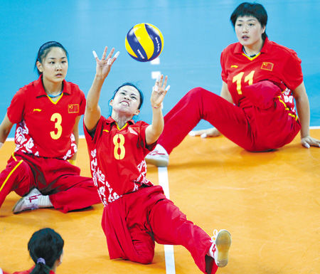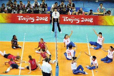 殘奧會(huì)坐式排球比賽方式與奧運(yùn)會(huì)排球比賽方式基本相同,但有部分特殊規(guī)定:例如坐式排球的比賽場(chǎng)地小于6人排球比賽場(chǎng)地;在比賽過程中運(yùn)動(dòng)員需坐在地上進(jìn)行比賽,其臀部必須保持與地面接觸,不允許站立和行走;在沒有妨礙對(duì)方完成技術(shù)動(dòng)作的情況下,允許隊(duì)員的手和腳越過中線;防守隊(duì)員可以直接攔截發(fā)球等。(來源: 亞殘運(yùn)會(huì)官方網(wǎng)站)