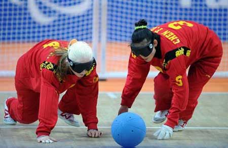 盲人門球運(yùn)動是根據(jù)盲人視力障礙特點(diǎn)而專門設(shè)計的一項集體球類項目,它需要運(yùn)動員根據(jù)觸覺來確定自己在場上的位置、方向;根據(jù)聽覺來判斷球的方向、速度,從而迅速做出反應(yīng)。這項運(yùn)動的形式適合于盲人視覺功能障礙的局限,集安全性、競技性、觀賞性于一體,既突出運(yùn)動員個人技術(shù)又強(qiáng)調(diào)團(tuán)隊配合。有人作了這樣的比喻:“盲人門球運(yùn)動是一項球似籃球,球門似足球,而擲球動作像保齡球的運(yùn)動! (來源: 亞殘運(yùn)會官方網(wǎng)站)