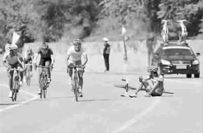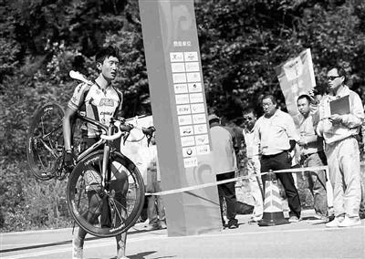 昨天在本溪進(jìn)行的第十二屆全運(yùn)會(huì)自行車男子公路個(gè)人賽中,解放軍隊(duì)選手吳佩倫在臨近終點(diǎn)沖刺時(shí)不慎摔倒(見上圖),但是他并未因此放棄比賽,而是扛著自行車走過終點(diǎn)線(見上圖),最終以4小時(shí)42分14秒的成績(jī)位列第26名。吳佩倫的行為,生動(dòng)體現(xiàn)了永不言棄的體育精神,賽后他說:“我到這里,不是來聽發(fā)令槍的,而是要沖過終點(diǎn)線的!
