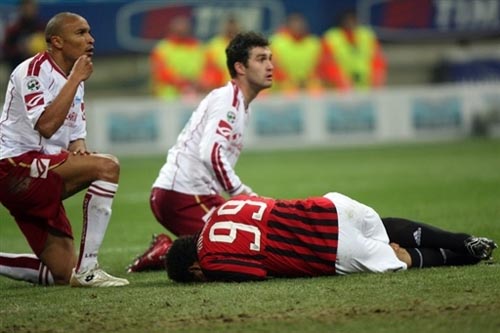 本場(chǎng)比賽進(jìn)行到57分鐘時(shí),AC米蘭0比1落后對(duì)手。對(duì)鋒線上的搭檔帕洛斯基和吉拉迪諾不滿的主教練安切洛蒂換上了羅納爾多和因扎吉。第60分鐘,奧多右路起球,沃諾隊(duì)隊(duì)的防守球員維迪加爾手球,主裁判吹罰點(diǎn)球并向維迪加爾亮出黃牌。羅納爾多因試圖跳起來(lái)攔截奧多的傳球受傷,抱著左膝倒地,表情痛苦地以手掩面,隨即哭著被擔(dān)架抬下直接送往更衣室。
