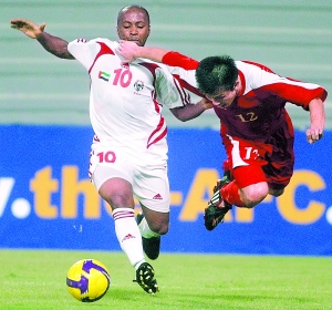 朝鮮隊無疑是這次十強賽中的黑馬,因此昨天的首次亮相也格外引人關(guān)注。昨天他們的對手是B組中實力比較弱的阿聯(lián)酋,兩隊都希望能夠在本場比賽中將對手拿下,借此增加出線的砝碼。在上半場比賽中,主場作戰(zhàn)的阿聯(lián)酋在場面上占優(yōu),頻頻對朝鮮隊的后防造成威脅,可惜阿聯(lián)酋隊的運氣實在不夠好,沒能取得進球。相反,朝鮮隊的運氣卻異常的好。下半時第74分鐘,客場作戰(zhàn)的朝鮮隊利用薩義德的烏龍球以1比0領(lǐng)先。5分鐘之后,替補上場的安哲赫將比分變成2比0。在第85分鐘,薩義德將功補過,打進一球,不過為時已晚,最終阿聯(lián)酋主場1比2不敵朝鮮隊。