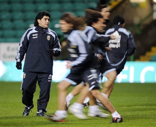 中新網(wǎng)11月18日電 當(dāng)?shù)貢r(shí)間17日,馬拉多納率領(lǐng)麾下的阿根廷隊(duì)在格拉斯哥進(jìn)行訓(xùn)練。19日,阿根廷將與蘇格蘭隊(duì)在格拉斯哥的凱爾特公園球場(chǎng)進(jìn)行一場(chǎng)熱身賽,這也是球王馬拉多納上任之后的首次亮相。