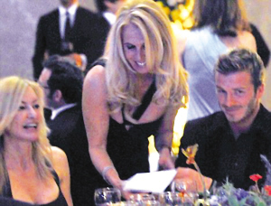 在上周米蘭當(dāng)?shù)嘏e辦的慈善晚宴上,貝克漢姆是作為特邀嘉賓出席的。就在小貝落座后不久,幾位當(dāng)?shù)厣缃幻戮颓案昂罄^地想在這位英國萬人迷身上探究個人魅力,而小貝除了保持風(fēng)度、應(yīng)接不暇地搭訕之外根本沒有其他選擇。結(jié)果,相對于其他女人,當(dāng)?shù)孛录硬见惏@剂松巷L(fēng),因為在狗仔隊的鏡頭下,貝克漢姆儼然擺出的是一副消受艷福的嘴臉。緊接著,連AC米蘭首席執(zhí)行官加利亞尼的老婆瑪麗卡也上前勾肩搭背地要同貝克漢姆親熱一番,接近小貝簡直成了出席那次慈善晚宴的女人們唯一的目的。