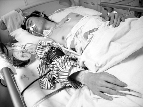 12月9日上午,記者在中國醫(yī)科大學附屬第一醫(yī)院重癥監(jiān)護室,看到身受重傷的王某仍躺在病床上接受著治療。據(jù)王某的母親介紹,王某今年22歲,原是遼寧某足球隊一名球員。今年年初時,因為家中經(jīng)濟條件不是太好,再加上外面還有許多債務,無力供王某繼續(xù)踢球,王某被迫從球隊回到家中。眼下,家中正托人幫著孩子尋找工作,可工作沒有找著孩子便出了事。
