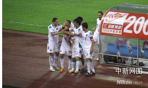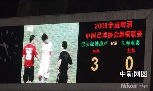 第74分鐘,替補(bǔ)上場(chǎng)的綠城13號(hào)及興華,接到隊(duì)友的邊路傳中后,右腳抽射將球打入。及興華上場(chǎng)不到10分鐘就幫助浙江綠城隊(duì)將比分?jǐn)U大為2-0。第82分鐘,浙江綠城隊(duì)趁著長(zhǎng)春亞泰隊(duì)后防空虛的機(jī)會(huì)再次展開(kāi)反擊,26號(hào)閻嵩輕松將球送入到長(zhǎng)春亞泰隊(duì)的大門(mén),浙江綠城3比0獲得勝利。(完)