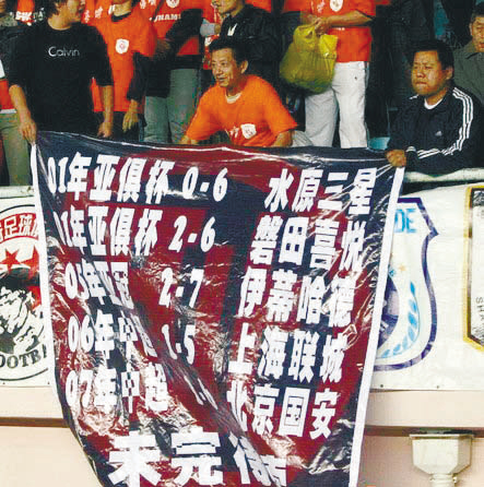 中超標語甚至成為奧運后中國足球的一棵救命稻草,讓聯(lián)賽不至于清湯寡水,還別有滋味。球迷因為寫標語而引發(fā)對足球的關(guān)注更是無價之寶。