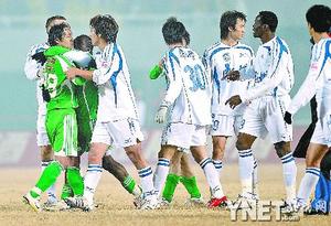 如果這次還可以說是裁判的失誤,那終場之后雙方的沖突就只能說是天津隊(duì)的責(zé)任了:比賽結(jié)束之后,郭輝與譚望嵩發(fā)生了口角,后者手上有了推搡的動(dòng)作,一直克制的郭輝卻在這個(gè)時(shí)候被對方外援多烏達(dá)搧了一個(gè)耳光!此舉徹底激起了國安替補(bǔ)席的怒火,而天津的教練組和替補(bǔ)隊(duì)員也馬上進(jìn)入了球場之中,雙方發(fā)生了肢體上的沖突,杜文輝的右眼角被重重打了一拳,瘀青的痕跡非常明顯。而天津隊(duì)隊(duì)長曹陽和外援多烏達(dá)在走進(jìn)更衣室之前更是向看臺(tái)做出了不文明的手勢,也將有可能受到足協(xié)的追加重罰。