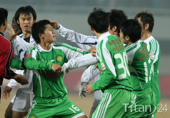 11月12日,北京國安與天津泰達賽后,雙方爆發(fā)斗毆,黃博文(16號)與對方毆打。圖片來源:體壇網