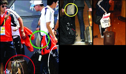 其實,這支國足去年12月首次集中的時候,其行李中大量的“LV”包就引起了外界的極大興趣,當時周海濱和崔鵬的世界名牌裝束還被拍下來發(fā)到了網(wǎng)絡上,LV拉桿行李箱,LV背包,還有Prada的腰帶、勞力士、江詩丹頓等名牌手表,甚至有人進行了估算,光國足的裝備就價值百萬元以上。
