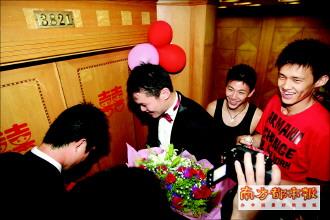 朱芳雨昨日迎娶的新娘胡美系前國家藝術(shù)體操隊隊員,4年前,兩位廣西老鄉(xiāng)在雅典奧運會閉幕式上結(jié)緣,并終在北京奧運會之后,將這一段發(fā)展了4年的戀情修成正果。昨日凌晨0時,朱芳雨便按照東莞當(dāng)?shù)仫L(fēng)俗完成“午夜搶親”的婚禮第一步,市區(qū)一處租來的臨湖別墅成為胡美的“臨時娘家”,朱芳雨就是從這里將新娘“搶”回二人的愛巢……