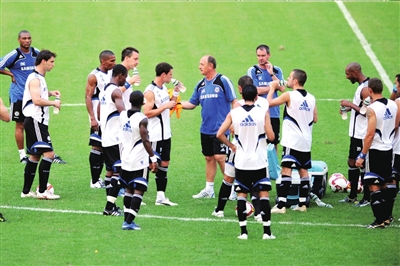 昨天傍晚,斯科拉里(中)帶隊(duì)進(jìn)行了訓(xùn)練。