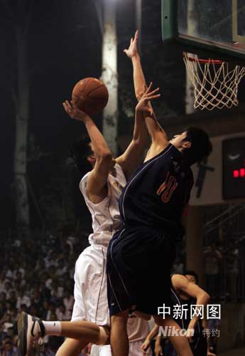 25日夜晚,2008CBA夏季聯(lián)賽第32場(半決賽)湖北煤投(遼寧盼盼)與天鐵集團(江蘇南鋼)在激戰(zhàn)中。作 者:張云