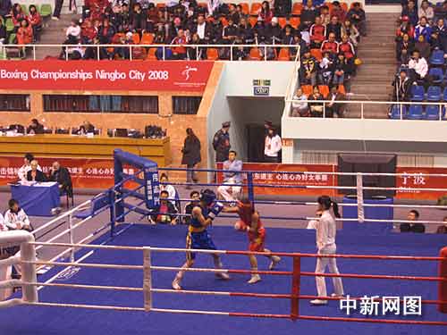 中新網(wǎng)寧波11月22日電(何蔣勇)2008世界女子拳擊錦標(biāo)賽今天下午在寧波拉開戰(zhàn)幕。本屆賽事由國(guó)際拳擊聯(lián)合會(huì)主辦,中國(guó)拳擊協(xié)會(huì)、寧波市人民政府承辦。這是世界女子拳擊錦標(biāo)賽首次在中國(guó)舉辦,也是寧波體育史上舉辦最高檔次的體育大賽之一。