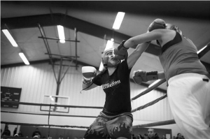 對(duì)手確實(shí)沒(méi)那么強(qiáng)大。她沒(méi)坐過(guò)牢,只是個(gè)從明尼蘇達(dá)州坐了8小時(shí)長(zhǎng)途車趕到這里的普通人,她抽煙,這是她練習(xí)拳擊10年來(lái)的第一場(chǎng)比賽。謝莉從鈴響的第一秒就開(kāi)始猛擊,第二回合對(duì)手被強(qiáng)制數(shù)八,第三回合,謝莉左手推開(kāi)對(duì)方的拳套,用右手猛擊,這次是對(duì)方在發(fā)抖。再過(guò)了一會(huì),裁判舉起了謝莉的手。