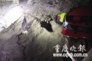 隊(duì)員發(fā)現(xiàn),一只巴掌大的蝙蝠倒掛巖壁,正呼呼大睡,絲毫不介意人類闖入;一只手指長的蜈蚣,正在尋覓食物,因長時(shí)間生活在黑暗環(huán)境,它褪去了深褐色肌膚,通體泛白……不過,這些原住民中,警惕性最高的數(shù)一只癩蛤蟆,它皮膚已泛白,見人靠近,立即鼓起腮幫,似在告誡眼前的人類,別惹我……