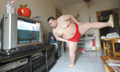 短短4年時間,體重從70公斤增加到了至少150公斤,沙坪壩區(qū)陳家灣一胖哥喜歡上了冷門的相撲運動,并打算3年后自費前往日本學(xué)習(xí)相撲術(shù),成為一名職業(yè)相撲手。這名“重慶相撲男”的照片一貼上網(wǎng)就成了網(wǎng)絡(luò)紅人。由于重慶的相撲選手只有他一個,一直找不到合適的對手過招,無奈之下,前日晚上,這位紅人在天涯上發(fā)帖,正式邀請一位泰拳選手進(jìn)行一場另類的比賽。