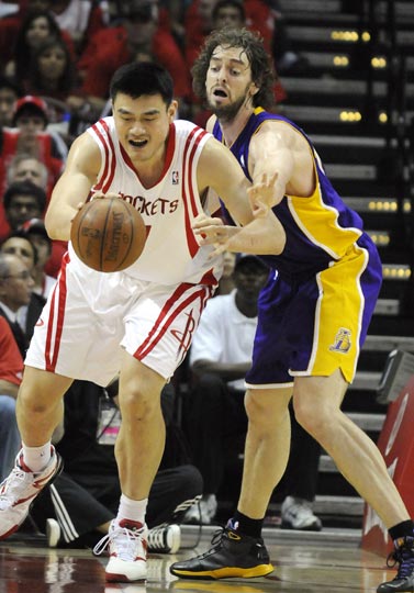 中新網(wǎng)5月9日電 在今天中午結(jié)束的一場(chǎng)NBA季后賽西部半決賽中,休斯敦火箭隊(duì)坐鎮(zhèn)主場(chǎng)迎戰(zhàn)湖人,最終火箭以94-108不敵對(duì)手,總比分被反超為1-2。姚明交出了19分、14個(gè)籃板的成績(jī)單。