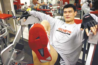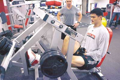 隨著傷勢逐漸好轉(zhuǎn),姚明已開始進(jìn)行恢復(fù)性訓(xùn)練。目前姚明每天都會(huì)將很大精力投入在力量器械上,從而保證缺陣期間的各項(xiàng)力量指數(shù)不至于下降,而腿部力量訓(xùn)練則是姚明訓(xùn)練中的重點(diǎn)。
