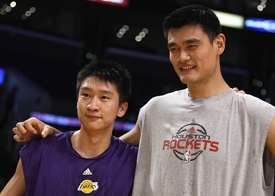 與湖人的比賽,中國(guó)記者擠滿(mǎn)了斯臺(tái)普斯球館的記者專(zhuān)區(qū),大家都想見(jiàn)證新賽季姚明和孫悅領(lǐng)銜的第一場(chǎng)中國(guó)德比。“希望他能上場(chǎng),我想和他在NBA賽場(chǎng)上拼一下。以前看到孫悅的時(shí)候,他總是穿著國(guó)家隊(duì)的隊(duì)服,現(xiàn)在看他穿上湖人隊(duì)服,我會(huì)有一些不適應(yīng)!币γ餍χf(shuō)道。不過(guò)“禪師”杰克遜沒(méi)有替姚明達(dá)成心愿,孫悅繼續(xù)“把板凳坐穿”,“中國(guó)德比”再次成空。