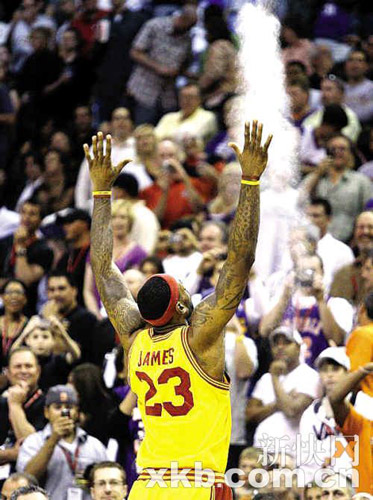 鳳凰城太陽隊的主場美航中心球館是勒布朗·詹姆斯進入聯(lián)盟以來唯一一座沒有征服過的球館。此前,詹姆斯在那里的戰(zhàn)績?yōu)閷擂蔚?勝5負,現(xiàn)在他可以吐氣揚眉了。而且騎士隊也結束了10年來客場不勝太陽的歷史。