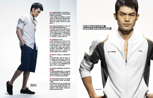 林丹:呵呵,也沒(méi)有那么好,只不過(guò)我們平時(shí)運(yùn)動(dòng)時(shí)間特別緊張,空閑時(shí)間很少,所以看雜志是很多運(yùn)動(dòng)員的放松方式。我就很喜歡看時(shí)尚雜志,另外我也會(huì)經(jīng)常出國(guó)比賽,會(huì)看到一些比較時(shí)尚的事物。最主要看自己的敏銳度,多去觀察,尋找適合自己的東西,不一定要跟流行,比如今年流行裙子,但我不可能跑去買條裙子穿。