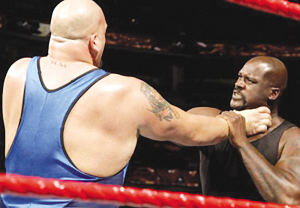 當(dāng)杰里科叫上體重達(dá)到226公斤的WWE冠軍成員“表演者”(保羅·懷特)時(shí),奧尼爾叫他“胖男孩”并向他挑戰(zhàn)!氨硌菡摺本芙^了跟他比賽,“我撞翻你后,又得去撞翻勒布朗·詹姆斯,我可不想大衛(wèi)·斯特恩和整個(gè)NBA都來(lái)追殺我!