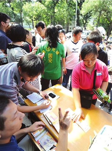 據(jù)球迷王先生介紹,他想要購買的是本月30日國安對陣魯能的比賽門票。“關(guān)系到國安今年能否在中超奪冠,作為十幾年的國安球迷,這場比賽我們必須去見證!睘橘I到門票,王先生昨天早上5點就到工體北門守候。當(dāng)時排在他前面的人只有5個,按照當(dāng)天該售票點發(fā)售500張票、每位球迷限買兩張票的情況,他覺得無論如何都能買上票。