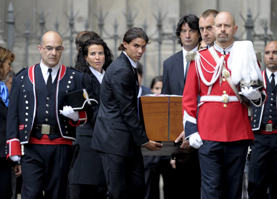 晚上18時(shí),他的葬禮在大教堂開始,西班牙國(guó)王胡安-卡洛斯攜妻子索菲婭、王儲(chǔ)費(fèi)利佩及妻子、埃倫娜公主和克里斯蒂娜公主以及羅格、西班牙著名F1車手阿隆索、西班牙網(wǎng)球天王納達(dá)爾、巴薩俱樂部主席等出席。