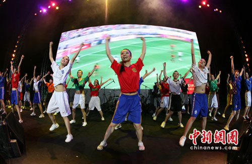 22:00時(shí),主角登場(chǎng),所有的鋪墊頓顯失色。大屏幕上,墨西哥和南非球員一字排開,國(guó)歌聲畢,裁判一聲哨響,2010年世界杯揭幕戰(zhàn)拉開序幕。隨著兩隊(duì)一次次快節(jié)奏的進(jìn)攻和防守,球迷的心也忽上忽下。上半場(chǎng),錯(cuò)過(guò)進(jìn)球的哀嘆此起彼伏,下半場(chǎng),隨著兩個(gè)精彩進(jìn)球,球迷的歡呼一浪高過(guò)一浪。1:1,墨西哥戰(zhàn)平東道主,激烈的揭幕戰(zhàn)告一段落,大家不會(huì)為比分焦慮,因?yàn)橄硎艿氖鞘澜绫,享受的是接下?lái)一個(gè)月的狂歡。(完)