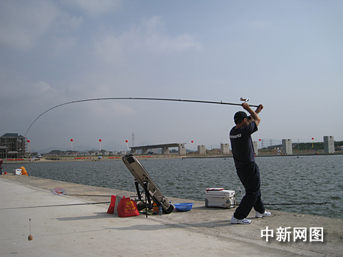 圖:選手正在拋竿釣魚(yú)。