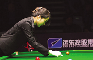 在08年歲末的宜興斯諾克全國錦標(biāo)賽中,人們又看到了一位熟悉的身影,那就是著名的美女裁判諸瑛,這也是諸瑛第三次在這項(xiàng)比賽中擔(dān)當(dāng)主要角色。不過,今年她的身份有所改變,已經(jīng)從一位國家級臺(tái)球裁判變成了國際金章裁判。