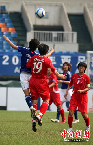 亞洲勁旅朝鮮隊開場就失利,被判罰點球,日本隊7號前鋒安藤梢主罰為日本隊奪得第一分。隨后,9號前衛(wèi)永里優(yōu)季再進一球,最后朝鮮隊以1:2負于日本隊。另一場緬甸0:2負于泰國隊。