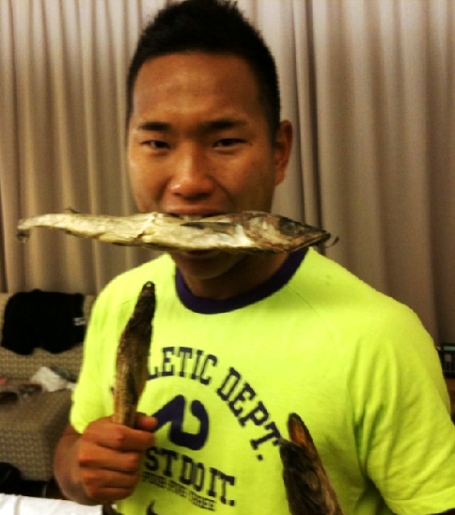 中新網(wǎng)6月19日電 在和巴西隊的比賽中表現(xiàn)出色的朝鮮國家隊隊員鄭大世在博客中上傳了“明太魚照片”,引起了人們的熱議。韓國《中央日報》報道稱,他在博客中公開了自己咬著明太魚的滑稽照片。他說:“明太魚是朝鮮國家隊隊員們喜歡的零食,我也很喜歡。”