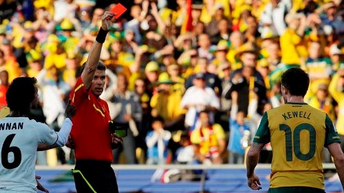 因?yàn)檫@一爭(zhēng)議紅牌,科威爾不僅要離開今天的賽場(chǎng),不能再參加澳大利亞小組賽第三輪的比賽,而且很可能要就此永遠(yuǎn)地告別世界杯。