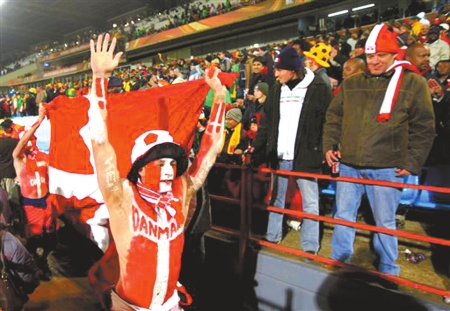 世界杯第一次在非洲、在冬天舉行,看臺上再狂熱的球迷,面對刺骨的寒風(fēng),也只能先把自己裹成粽子。不過,沒有最狂熱只有更狂熱,在喀麥隆隊與丹麥隊的比賽中,兩名丹麥球迷上演了本屆世界杯的首例“裸奔”。