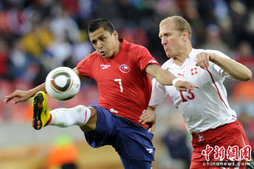 中新網(wǎng)6月21日電 北京時間今晚,世界杯H組第2輪首戰(zhàn)在伊麗莎白港納爾遜-曼德拉灣球場展開較量。瑞士中場貝赫拉米連續(xù)肘擊兩人,被紅牌罰下后,以十人應(yīng)戰(zhàn)的他們在下半場被智利隊(duì)岡薩雷斯打入一球,以0-1告負(fù)。