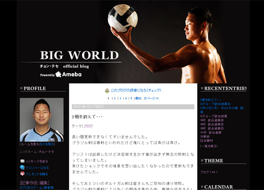 中新網(wǎng)6月25日電 據(jù)韓國媒體JES報道,“人民魯尼”鄭大世(27歲)在自己的博客上留下了自己對于慘敗葡萄牙的感受。6月23日下午,鄭大世在博客上刊登了題為《結(jié)束第二戰(zhàn)》的文章。
