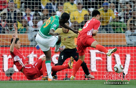 比賽剛開(kāi)始,科特迪瓦隊(duì)就表現(xiàn)出強(qiáng)烈的求生欲望,球隊(duì)攻勢(shì)兇猛,朝鮮隊(duì)則十分被動(dòng)。在比賽的前10多分鐘,他們就有多次射門(mén),而且命中率極高,多數(shù)都在對(duì)方的球門(mén)范圍內(nèi)。朝鮮隊(duì)在中場(chǎng)被對(duì)手壓制,難以形成有力的反擊。