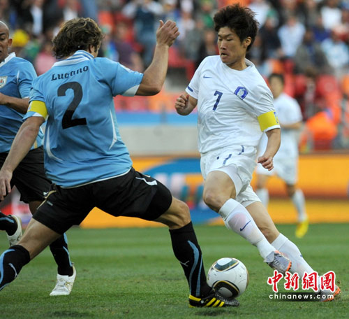 《朝鮮日報》記者現(xiàn)場發(fā)回的消息稱,南非世界杯首場1/8決賽,韓國隊以1-2惜敗給烏拉圭隊。比賽結(jié)束后,球員們難掩失望之情。比賽中,烏拉圭球員蘇亞雷斯在上半場第8分鐘率先破門進(jìn)球。韓國隊的李菁龍在下半場第22分鐘扳回一球,追平了烏拉圭。然而,韓國隊最終在下半場35分鐘允許蘇亞雷斯進(jìn)第2粒球。