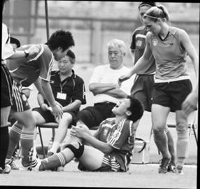 馬曉旭是4月1日受傷的,當(dāng)時(shí)女足正在踢熱身賽,與第二次受傷一樣,在沒有任何征兆甚至沒有任何拼搶的情況下,馬曉旭突然倒地?粗е蚁ネ纯嗟臉幼,全隊(duì)人心都提到了嗓子眼。檢查結(jié)果證明了最壞的猜測,那條脆弱的十字韌帶再次斷裂。在昆明度過了漫長的4天之后,5日下午,馬曉旭與幾位大連隊(duì)友返回大連。當(dāng)她坐著機(jī)場的輪椅被推出來時(shí),早已守候在機(jī)場大廳的曉旭媽媽急急迎上去,把一副拐杖遞給女兒,扶女兒站起來走出機(jī)場,此時(shí)曉旭母親已淚流滿面。