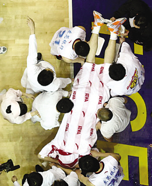 此時(shí)場(chǎng)邊突然沖出一名穿著黑色衣服的人員,憤怒地一拳打向查爾斯。但此人很快就被死死抱住,新疆隊(duì)的球員也圍了過(guò)來(lái),和廣東球員互有推搡,被抱住的查爾斯怒氣未消,想找杜鋒和那位想襲擊他的人予以還擊。裁判分開(kāi)雙方球員,場(chǎng)上砸下許多雜物,更有侮辱性的語(yǔ)言贈(zèng)與查爾斯。在槍林彈雨中,查爾斯被新疆隊(duì)的球員和部分警衛(wèi)簇?fù)碇x開(kāi)球場(chǎng)。球場(chǎng)十分混亂。