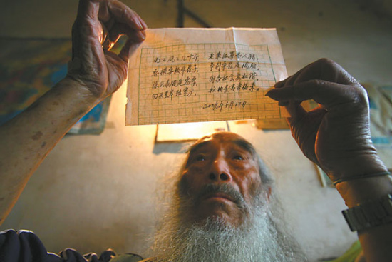 現(xiàn)在,老人已經(jīng)入院治療多種內(nèi)科疾病,“關(guān)鍵是心情不好,病也難得好!标惱险f,心病還需心藥醫(yī),自己盼望寫信人能露面說個清楚。
