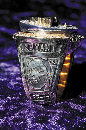 以前的總冠軍戒指都要分別刻上不同球員的名字和號(hào)碼,新版湖人總冠軍戒指又作出創(chuàng)新,增加了球員頭像。每一枚總冠軍戒指又會(huì)選出一顆鉆石刻上湖人的“L”字母,不同戒指的這些“L”所處鉆石的位置又會(huì)不同,必須通過(guò)高倍顯微鏡才能看到,因此每人的總冠軍戒指都是自己獨(dú)一無(wú)二的身份證明。
