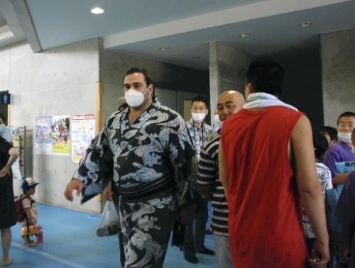 這次率隊巡業(yè)的是日本相撲橫綱的朝青龍。為了對孩子們負責,預定舉行的力士與孩子們的“兒童訓練”不得不中止下來。許多孩子為此遺憾連連,在現(xiàn)場向戴著口罩的大相撲不斷地揮手致意。