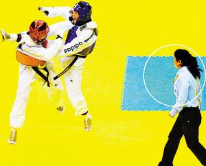 龐海遠出生于1973年,浙江瑞安人。十幾年前她作為浙江女子柔道隊運動員曾勇奪全國冠軍。因傷退役后不久,她便與相戀多年的男友結了婚,兒子現(xiàn)在9歲。退役后的龐海遠,先后擔任了柔道和跆拳道教練,世界冠軍吳鈔來、全國冠軍董鳳鳴等都是龐海遠的得意門生。她也是浙江唯一的一位跆拳道國際級裁判。