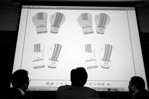 最受人關(guān)注的聯(lián)賽標(biāo)識(shí)設(shè)計(jì)征集工作歷時(shí)3個(gè)月,得到了廣泛響應(yīng),共征集標(biāo)識(shí)樣稿800多件。中國(guó)拳擊聯(lián)賽委員會(huì)組織專家對(duì)樣稿進(jìn)行了評(píng)審。和公眾對(duì)拳擊的傳統(tǒng)印象不一樣,中國(guó)拳擊聯(lián)賽的標(biāo)識(shí)少了一些鐵血的色彩,而更加活潑、卡通化。“我們的設(shè)想就是給大家一點(diǎn)新意,不要老是覺得拳擊運(yùn)動(dòng)都是既粗又野。我們想表現(xiàn)賽場(chǎng)上勇猛果敢,而賽場(chǎng)下又有些情趣,不失活潑!敝袊(guó)拳協(xié)主席常建平說。